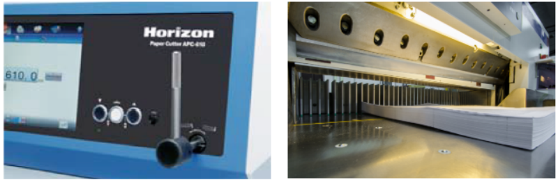 Horizon APC-610切纸机采用液压驱动与ISO13849-1安全标准,裁切精度达±0.1mm,支持99步作业记忆。