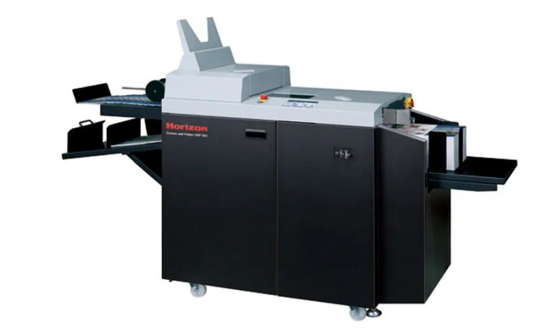 Horizon CRF-362压痕折页机,压痕与折页只需一道工序,避免数码印刷品图象破裂的问题。可通过选择向上或向下压痕来生产出书脊,边胶压痕线和勒口压痕。