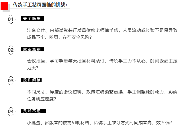 在不断调研和探索中推出针对数字按需印刷的GBS-300保密装订系统,为数字印后时代打造数码印后按需装订新工艺,其自动化、智能化的装订新工艺解决方案为党政、文印中心注入强劲动能!