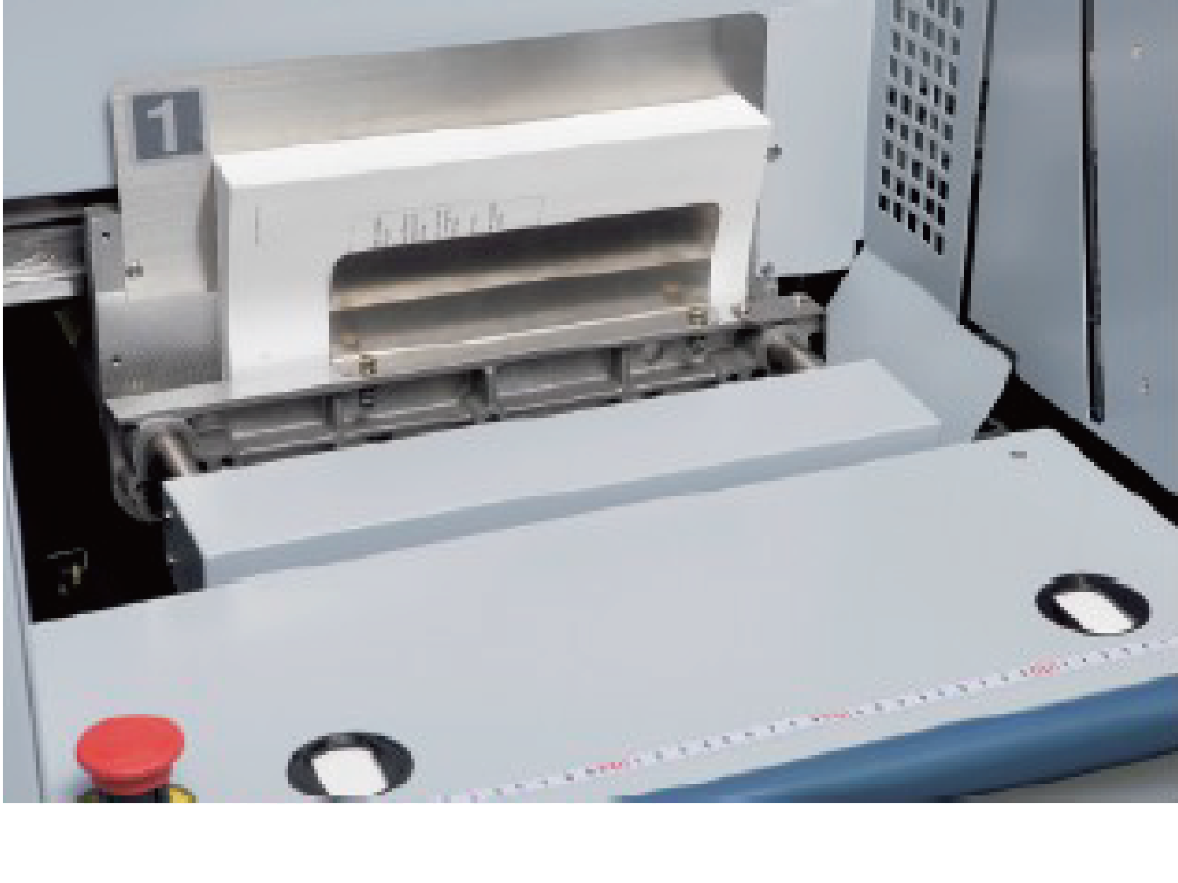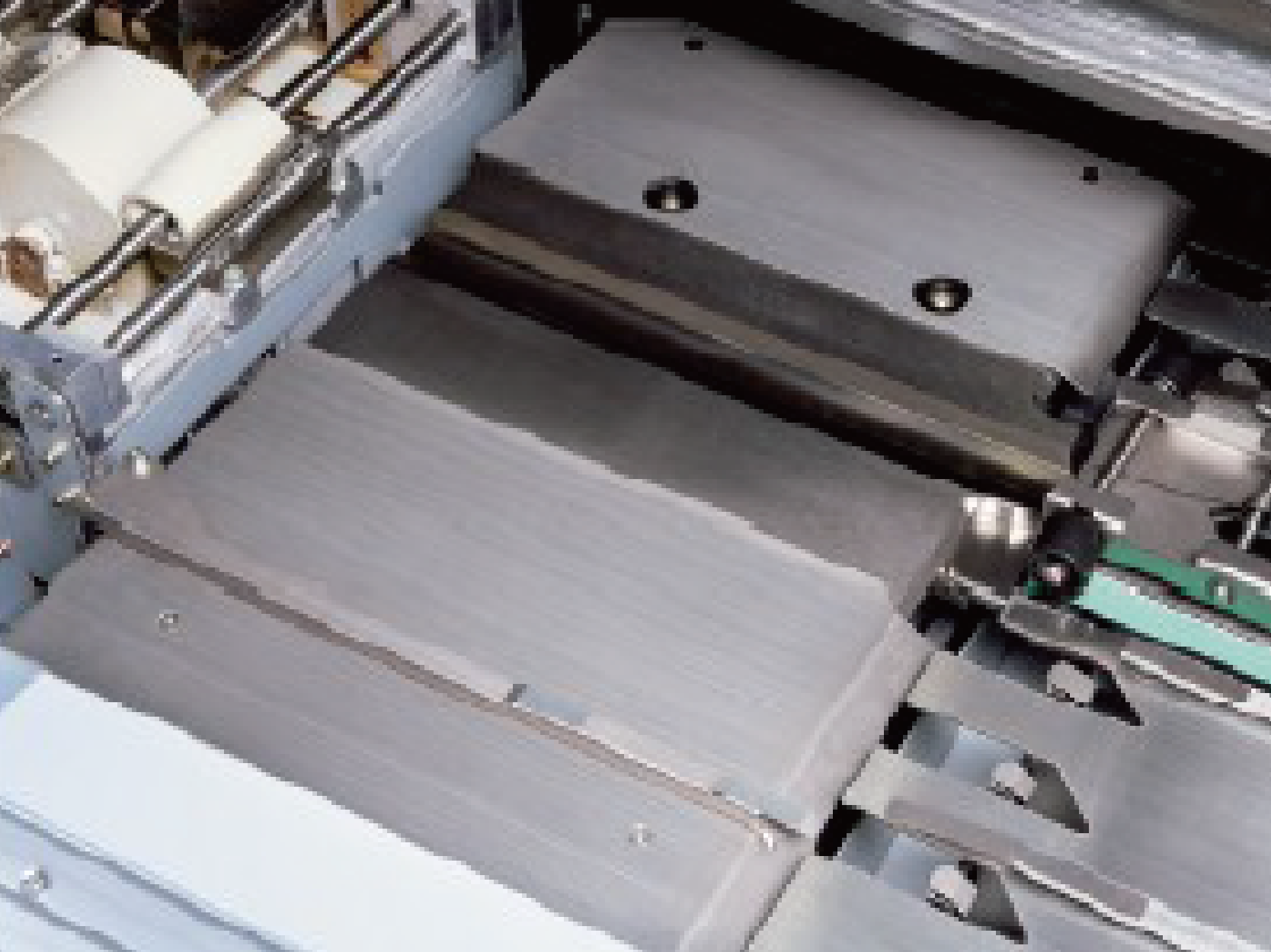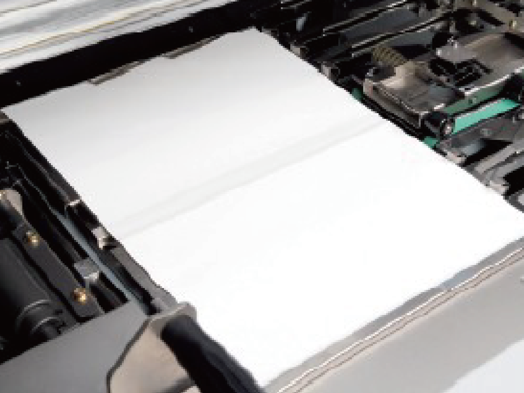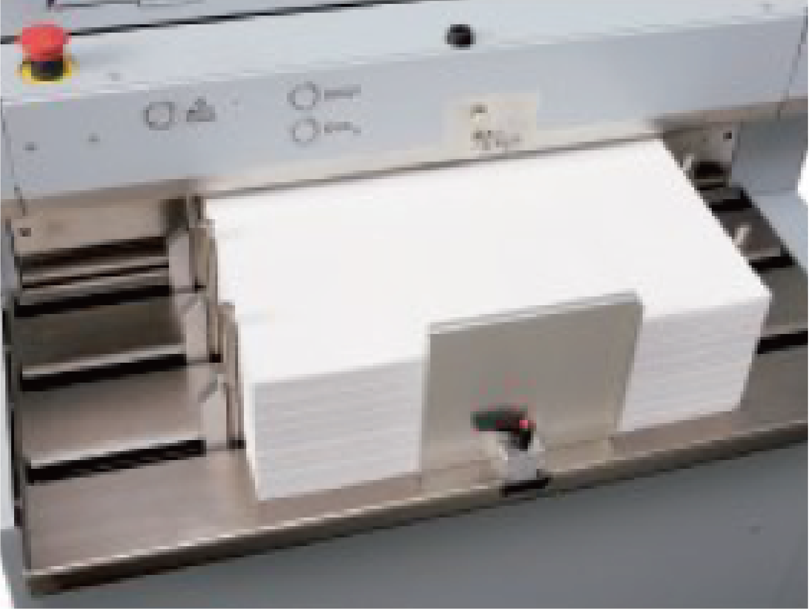 大容量封面送纸部分的量大书堆高度达150毫米,便于连续装订作业。封面送纸装置适应各种封面,对于普通纸适应范围由81.4至302.4gsm,铜版纸由104.7至348.9gsm