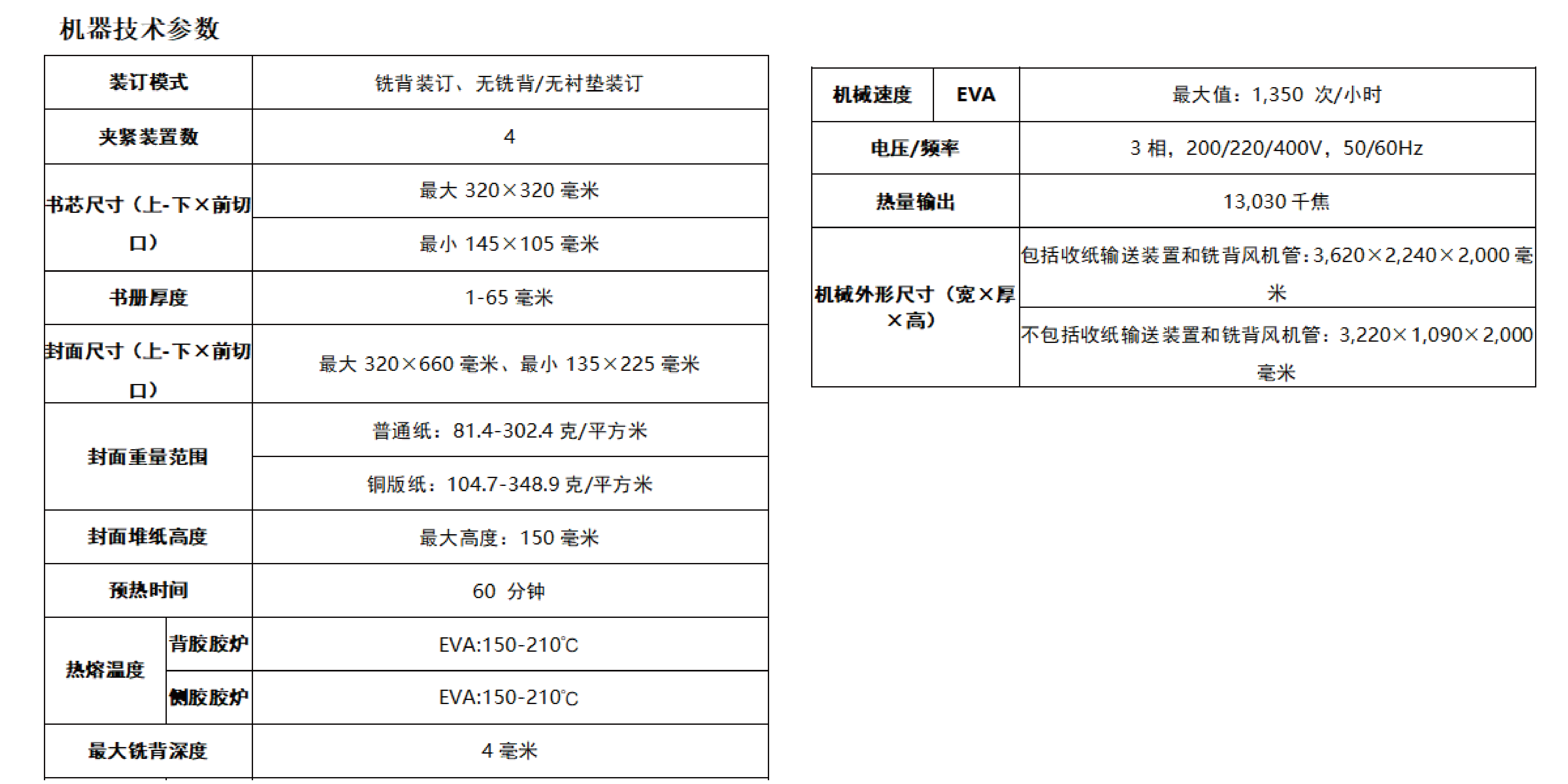 铣磨开槽装置有伺服电机驱动,将书芯或书帖脊背切平,以促进粘胶穿透和粘合。铣磨宽度可调整,调整范围为0-4毫米。
