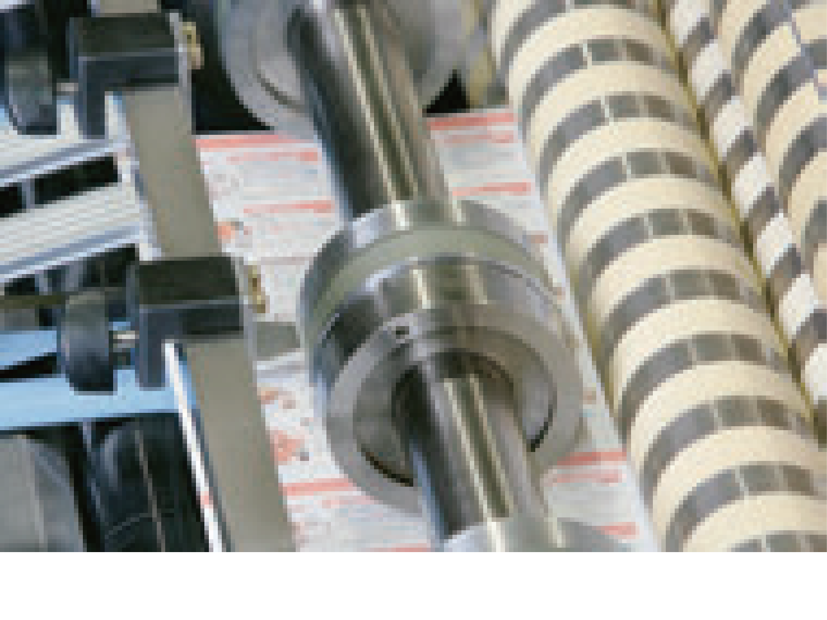 采用软质聚氨酯橡胶(Soft PU)和钢材融合的折页辊,折页效果一致,简单设置。折页辊上附有的斜齿轮确保折页的最大精度并安静的运行。灵活的软胶轴位器最大程度上减小磨损。